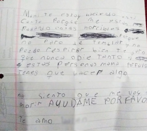 “No paro de temblar y no puedo respirar bien. Siento que me voy a morir”, escribió la menor en una misiva hecha de puño y letra donde pidió ayuda.