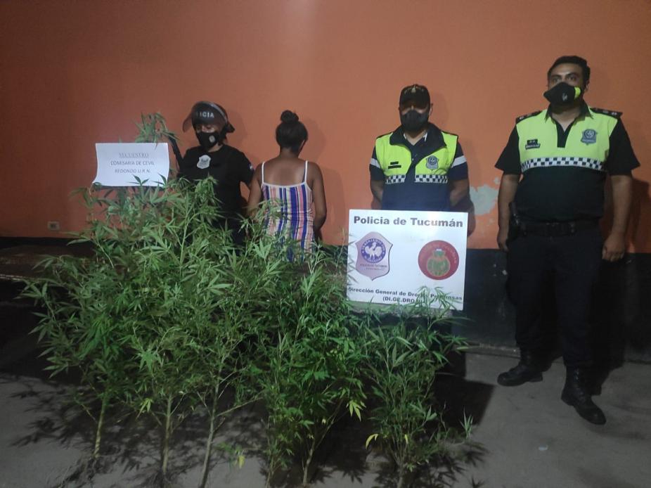 Durante el procedimiento se encontraron plantas de marihuana de más de un metro de altura. Intervino la justicia ordinaria y la justicia federal. Por el hecho, fue detenida una mujer que se declaró propietaria de los almácigos de la planta narcótica.