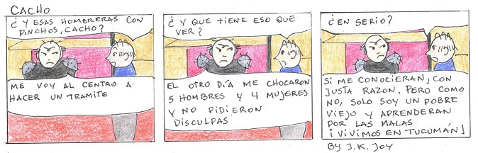 Actualidad Cacho busca métodos prácticos para caminar tranquilo por el centro 23 septiembre, 2021 Compartir en Facebook Compartir en Twitter 🔊 Escuchar la entrada Cacho, el personaje principal de la tira cómica de Diario Cuarto Poder, creada por J.K. Joy, se las ingenia para hallar un método que le permita caminar por San Miguel de Tucumán sin ser llevado por delante por los otros peatones. Comments Comentarios