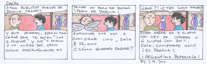 Actualidad Cacho en pascua 5 abril, 2023 Compartir en Facebook Compartir en Twitter 🔊 Escuchar la entrada El personaje principal de la tira cómica de Diario Cuarto Poder, Cacho, creada por J. K. Joy negocia con los huevos de pascua. ¡Argentina Potencia! Comments Comentarios