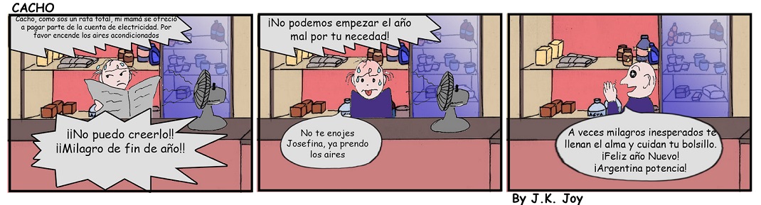Actualidad Cacho esta feliz en este fin de año 31 diciembre, 2025 Compartir en Facebook Compartir en Twitter 🔊 Escuchar la entrada El personaje principal de la tira cómica de Diario Cuarto Poder , Cacho, Creado por J.K. Joy , se pone contento por milagros inesperados, pasará el año nuevo muy fresco y sin gastar un centavo en ello Comments Comentarios