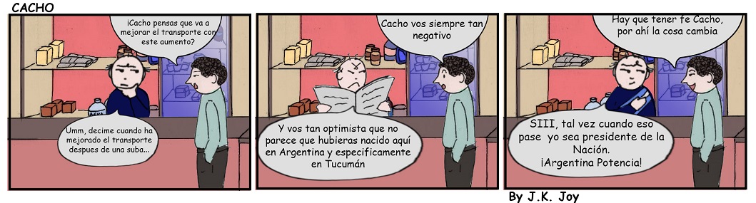 Actualidad Cacho no cree en la mejora del transporte tras la suba 14 octubre, 2024 Compartir en Facebook Compartir en Twitter 🔊 Escuchar la entrada El personaje principal de la tira cómica de Diario Cuarto Poder , Cacho, Creado por J.K. Joy , no tiene el mismo optimismo de su cliente con respecto al transporte público de pasajeros Comments Comentarios