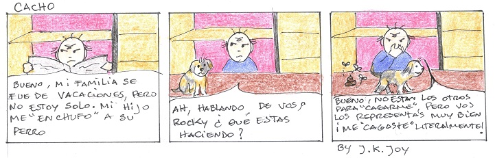 A cacho no le salen todas bien. El disfrute de la soledad en casa, con el resto de su familia de vacaciones, no es completo. Su hijo le dejó un compañero con el que el protagonista de la tira de Diario Cuarto Poder tampoco se lleva bien.