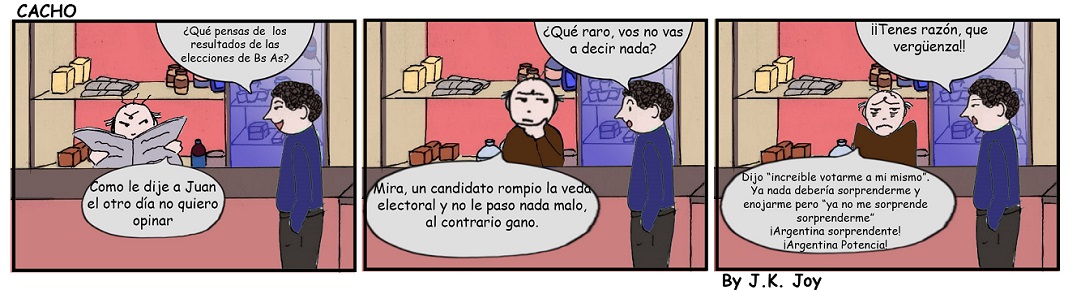 Actualidad Cacho no puede con su propia naturaleza 20 mayo, 2025 Compartir en Facebook Compartir en Twitter 🔊 Escuchar la entrada El personaje principal de la tira cómica de Diario Cuarto Poder , Cacho, Creado por J.K. Joy ,intenta no hablar sobre las elecciones en Bs As, pero ya sabemos como termina esto. Comments Comentarios