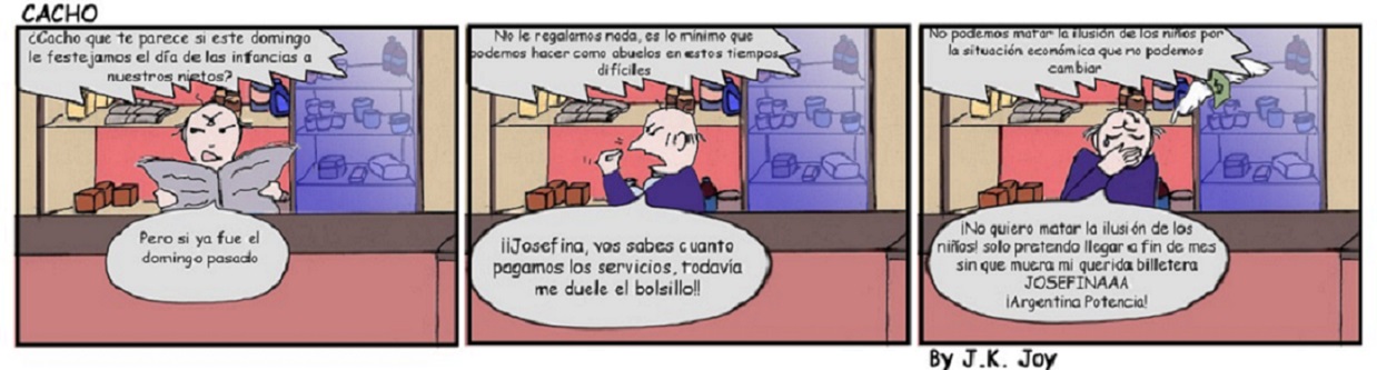 Actualidad Cacho quiere llegar a fin de mes 21 agosto, 2024 Compartir en Facebook Compartir en Twitter 🔊 Escuchar la entrada El personaje principal de la tira cómica de Diario Cuarto Poder , Cacho, Creado por J.K. Joy ,se preocupa por llegar a fin de mes sin que muera su billetera Comments Comentarios