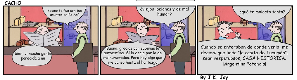Actualidad Cacho regresa un poco molesto de Buenos Aires 18 diciembre, 2023 Compartir en Facebook Compartir en Twitter 🔊 Escuchar la entrada El personaje principal de la tira cómica de Diario Cuarto Poder , Cacho, Creado por J.K. Joy , su amigo Juan no para de preguntar y cacho no se queda atrás y le comenta su descontento. Comments Comentarios