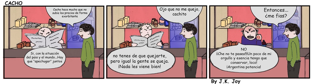 Actualidad Cacho se ablanda un poquito 11 junio, 2025 Compartir en Facebook Compartir en Twitter 🔊 Escuchar la entrada El personaje principal de la tira cómica de Diario Cuarto Poder , Cacho, Creado por J.K. Joy , piensa en la situación del país y no esta subiendo los precios como antes. Comments Comentarios