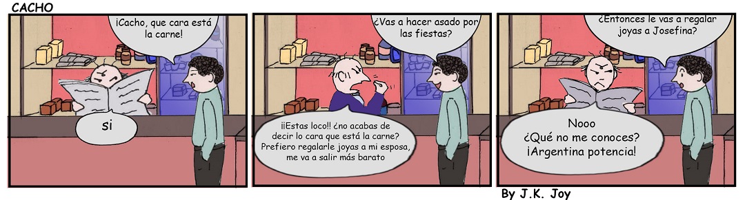 Actualidad Cacho se queja del precio de la carne 16 diciembre, 2024 Compartir en Facebook Compartir en Twitter 🔊 Escuchar la entrada El personaje principal de la tira cómica de Diario Cuarto Poder , Cacho, Creado por J.K. Joy , no puede dejar de ser Cacho ni para la Navidad Comments Comentarios