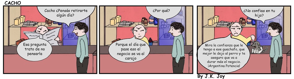 Actualidad Cacho y el futuro de su negocio 11 junio, 2023 Compartir en Facebook Compartir en Twitter 🔊 Escuchar la entrada El personaje principal de la tira cómica de Diario Cuarto Poder , Cacho, Creado por J.K. Joy , la pregunta de un cliente hace pensar a cacho sobre el futuro de su negocio y su posible heredero. Comments Comentarios