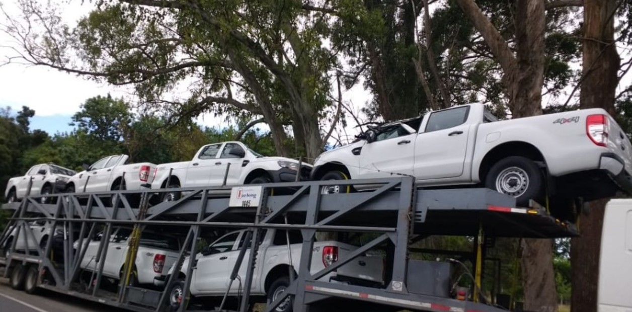 Según fuentes policiales, el hecho se produjo ayer por la tarde y el chofer declaró que los vehículos estaban destinados a transformarse en patrulleros de la Policía Bonaerense. Aunque la versión luego fue desmentida. Y aunque el incidente no produjo víctimas humanas, sí causó costosos daños.