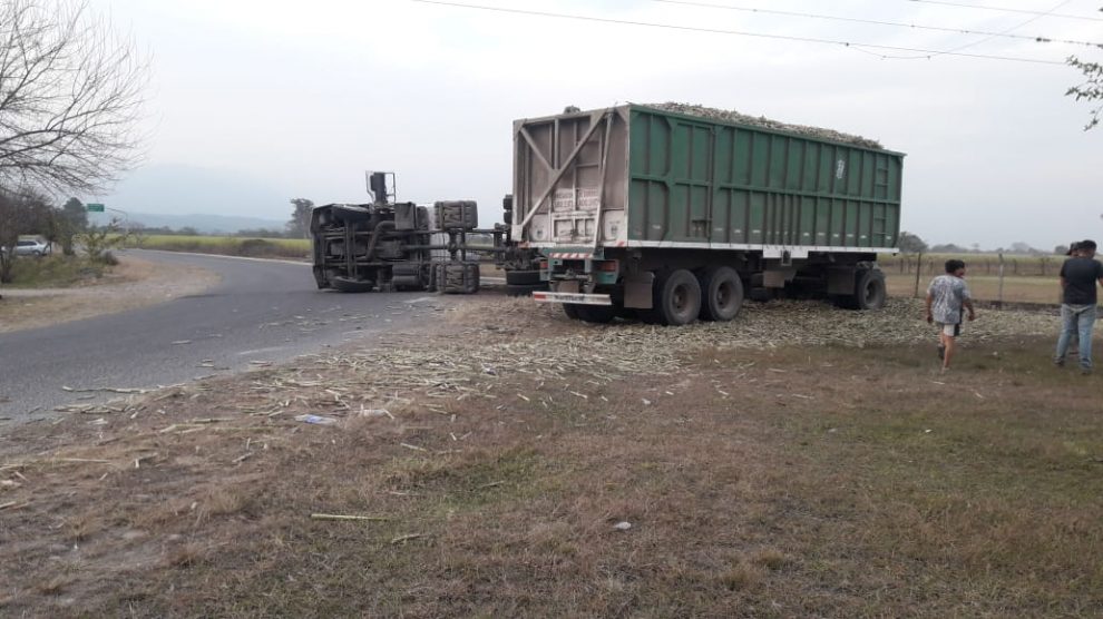 El conductor de un camión cañero perdió el control y terminó volcado en la zona de El Cercado, departamento de Monteros, durante la tarde de este sábado. El hecho se registró cerca de las 17.30, sobre la intersección de rutas provinciales 325 y 324 a la altura del complejo polideportivo Núñez Piossek.