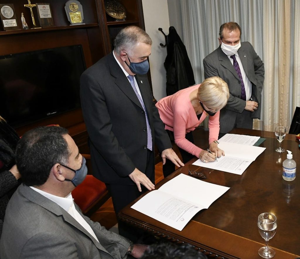 En un encuentro encabezado por el Vicegobernador, CPN Osvaldo Jaldo, esta mañana, se firmó el convenio entre la H. Legislatura, la Universidad San Pablo T y la Facultad de Filosofía y Letras de la UNT, a fin de comenzar a dictar las capacitaciones obligatorias en temáticas de género y violencia contra las mujeres, conocida como “Ley Micaela”, aprobada recientemente por el Poder Legislativo de la provincia.