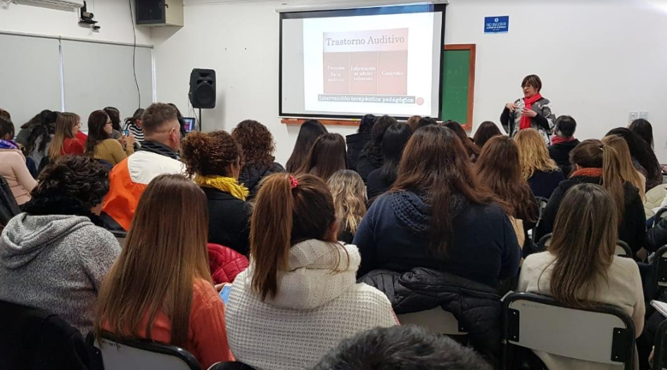 Claudia García, miembro del equipo técnico de la Dirección de Educación Especial, dijo: “Estamos reunidos para la capacitación de Atención Temprana y Discapacidad. Son 120 personas que ya hicieron un trayecto formativo anteriormente. Las tres capacitaciones tienen la modalidad semipresencial porque tiene una parte virtual mediante la plataforma FORMAR”.