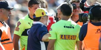 La tensa pelea en el campo de juego entre Maradona y...