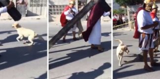 Vía Crucis viral: perro callejero ataca a soldados romanos que azotaban...