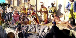 Una militante semidesnuda intentó robar el Niño Jesús del pesebre gigante...