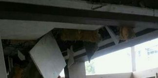 Escuela Muedra Tasquer: cayó parte del cielo raso