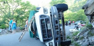 Volcó un camión con peregrinos en la Cuesta de El Portezuelo