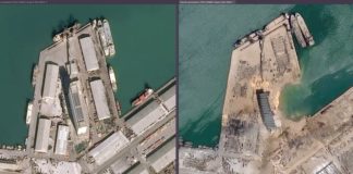 El impactante antes y después de la explosión en el puerto...