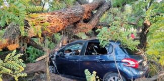 Un árbol aplastó un auto en el Parque 9 de Julio