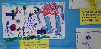 En un jardín de infantes, maestros hacen que los chicos dibujen...