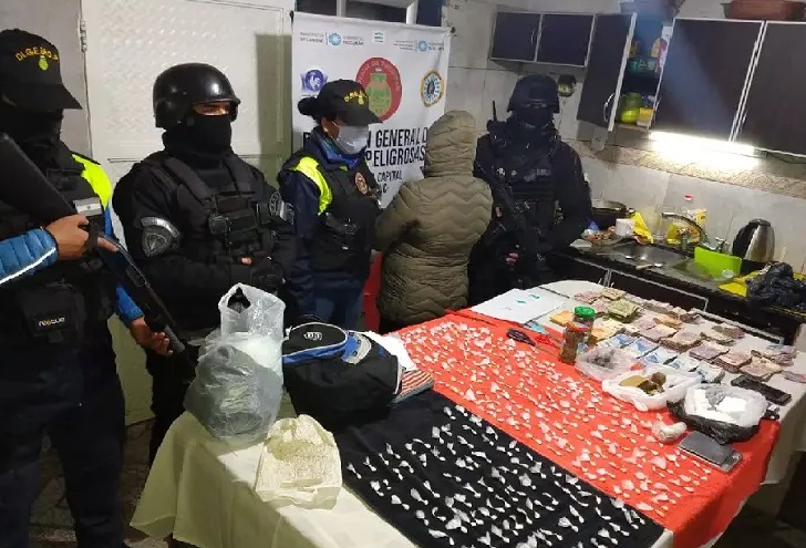 El operativo se realizó en un domicilio ubicado en el pasaje Chile al 1950, en esa vivienda los efectivos policiales encontraron numerosas sustancias listas para la comercialización y elementos para el fraccionado de la droga.