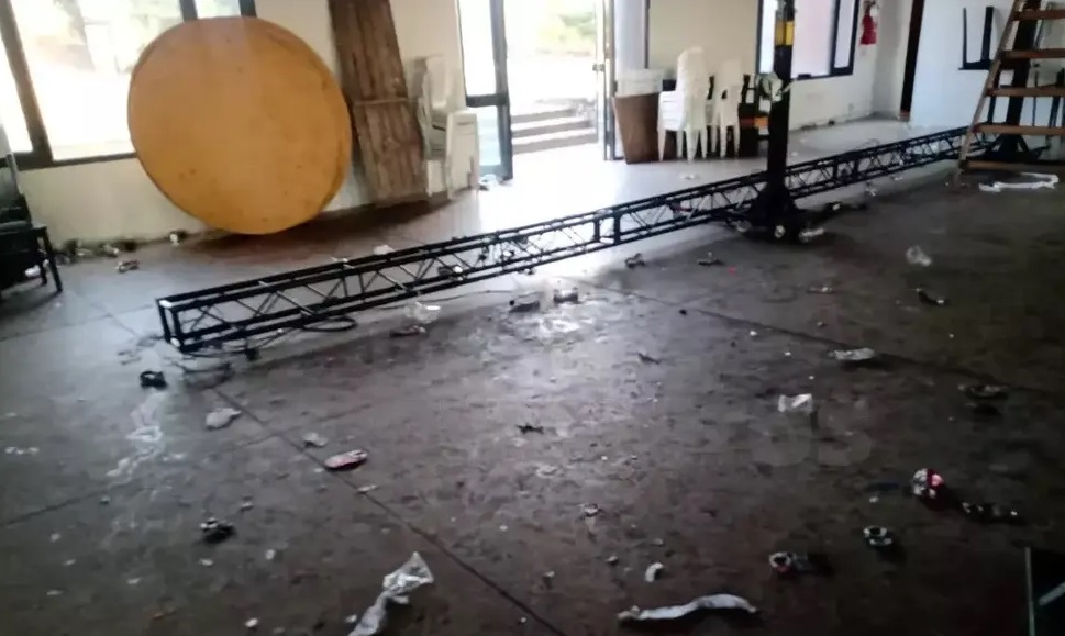 Una estructura de iluminación se desprendió en un salón de fiestas en la ciudad de Yerba Buena. El hecho se produjo, mientras se desarrollaba un evento y producto de la caída de la torre, hubo tres personas resultaron heridas, dos mujeres y un hombre.