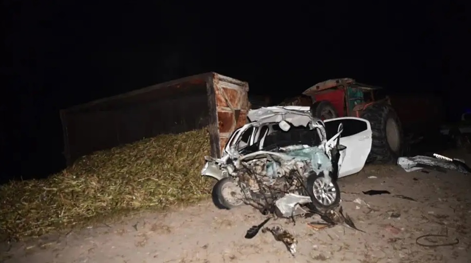 Un grave accidente vial se produjo en la noche de ayer sobre la Ruta Provincial 329, a la altura del paraje Yucumanita, departamento Chicligasta. Un automóvil Fiat Cronos blanco impactó violentamente contra un tractor que transportaba cuatro volquetes cargados con caña de azúcar.