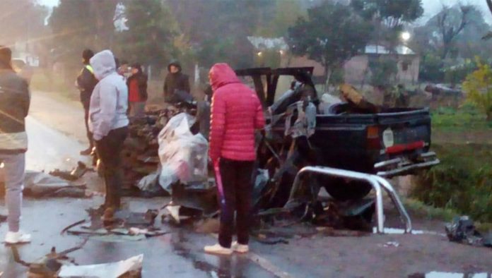Dos hombres murieron en un tremendo choque entre una camioneta y un colectivo. Todo ocurrió cerca de las 6.30, en el kilómetro de 20 de la ruta 304, a la altura de El Chañar.