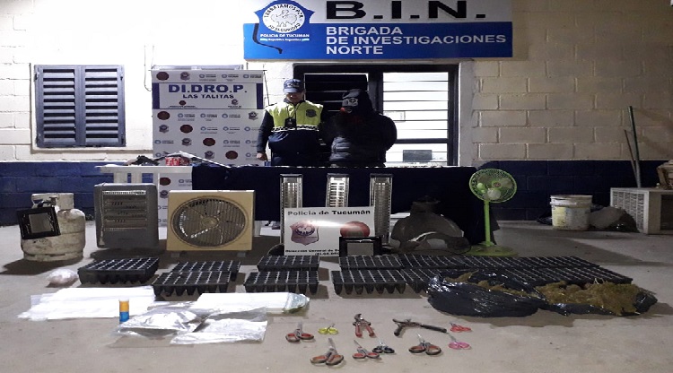 En el lugar también se hallaron sustancias prohibidas, por lo que tomó intervención el equipo de la Dirección General de Drogas Peligrosas (Digedrop), a cargo de Manuel Castaño, que procedió a incautar más de 800 semillas de marihuana y 600 gramos de flores de esa sustancia. En el lugar también se observaron más de 200 tallos de plantas de marihuana que, según se observó, ya habían sido cosechadas. Por este hallazgo, los efectivos dieron intervención al Juzgado Federal de turno.