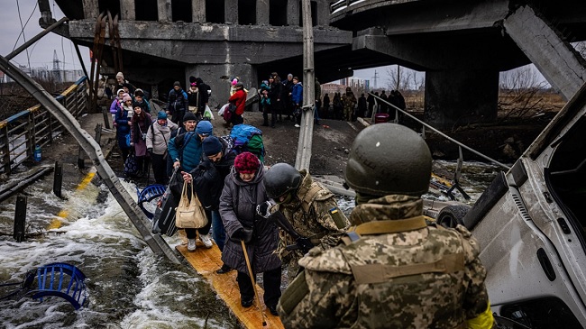 Colectivos evacuaron hoy a civiles de una ciudad de Ucrania asediada por fuerzas de Rusia comenzaron hoy en Ucrania a través de corredores humanitarios, mientras que la ONU anunció que más de 2 millones de personas ya huyeron del país en menos de dos semanas desde el comienzo de la invasión rusa.