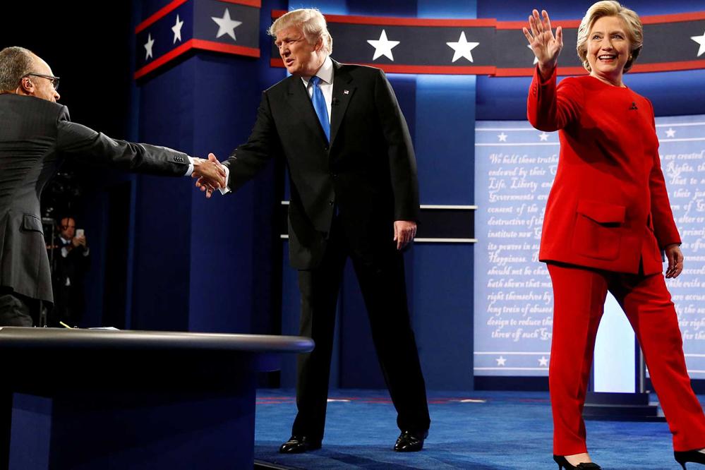 Las familias de los candidatos ingresaron al salón del debate en la Universidad de Hofstra, a las afueras de Nueva York, momentos antes de que Clinton y Trump tomaran sus lugares en sus estrados, antes de saludarse con un respetuoso apretón de manos.