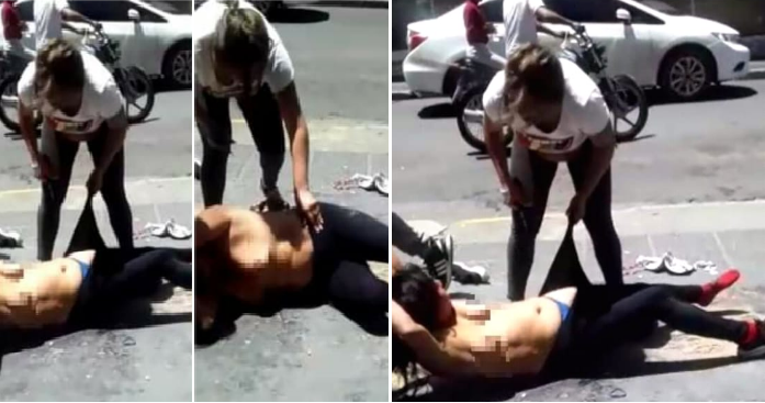 Las imágenes más sensibles del momento fueron captadas por un transeúnte que grabó parte de la secuencia desde el interior de una galería comercial. En el video que se viralizó en redes sociales se ve como al final del linchamiento intervienen estas mujeres para hacer “justicia por mano propia”.