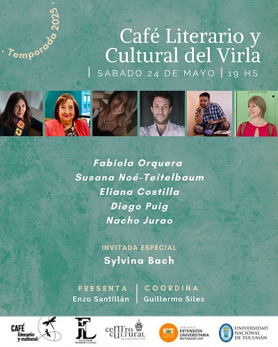 Un ciclo de tradición e importancia, el Café Literario y Cultural del Virla, presentará este sábado una cartelera de brillantes escritores entre los que se incluye a Fabiola Orquera, Susana Noé, Eliana Costilla, Diego Puig y Nacho Jurao.