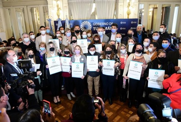 El gobernador, Osvaldo Jaldo, realizó esta mañana en el Salón Blanco de la Casa de Gobierno la entrega de subsidios para la conformación de la Red Provincial de Instituciones Intermedias, Organizaciones no Gubernamentales y Fundaciones que se dedican al abordaje de los consumos problemáticos. En total, fueron 49 organizaciones las beneficiadas.