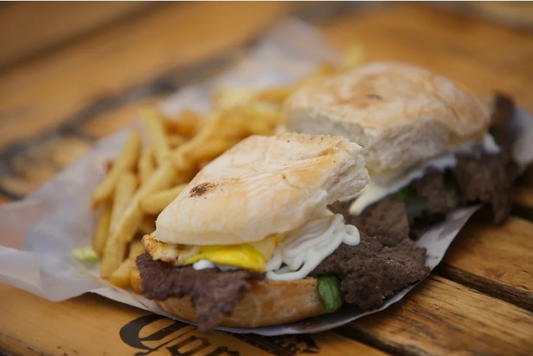 La hamburguesa con papas fritas es el plato predilecto en los almuerzos de las playas de Punta Mogotes y el sur.Punta Mogotes