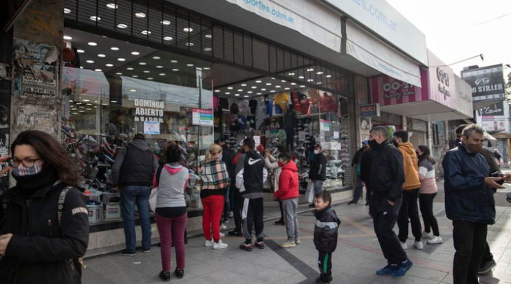 Si bien en este sector la mayoría de los comercios son de indumentaria, también se destacan los locales de venta de electrodomésticos y algunas perfumerías. Tal como establece el protocolo de higiene y seguridad, no está permitido que los clientes ingresen a los locales: se los atiende desde la puerta.