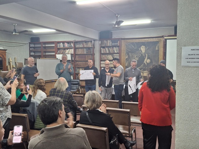 La lluvia arreció de forma contundente en medio de esa tarde el 17 de mayo pasado, costó llegar porque la avenida General Paz, que divide la ciudad de San Martín de la Ciudad Autónoma de Buenos Aires, granizo viento y agua, pero igual se logró llegar a horario para la entrega de las distinciones en la Biblioteca Popular General San Martín, en la calle, Matheu 3728 de esa localidad, en el conurbano del Área Metropolitana de Buenos Aires (AMBA).