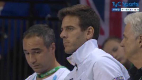 Juan Martín del Potro estuvo hoy en el último punto de la serie en la que Argentina busca el pase a su quinta final de Copa Davis ante Gran Bretaña pero en el rol menos esperado, el de espectador, al decidir bajarse de la definición por la carga de las ocho horas de juego que acumuló entre viernes y sábado y que ponían en riesgo su físico de cara a la continuidad de su carrera.