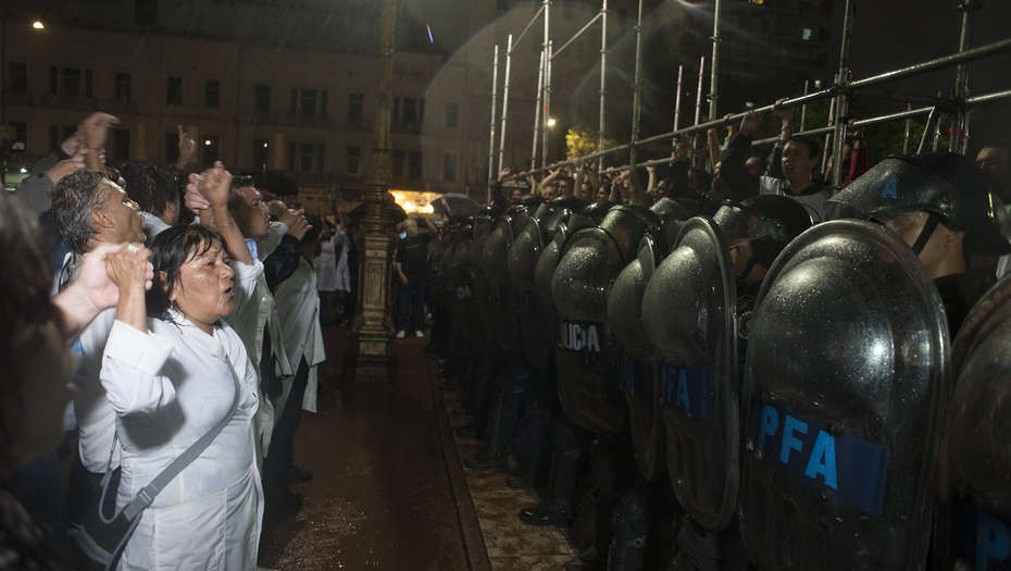 El objetivo de la fuerza de seguridad era desalojar a los gremialistas docentes y los elementos que se habían montado desde la tarde en la Plaza de los Dos Congresos, sobre la calle Solís, entre Rivadavia e Hipólito Yrigoyen. Las autoridades municipales aclararon que los sindicalistas no tenían autorización formal para montar el armazón de unos 100 metros cuadrados que se había ubicado en el espacio público.