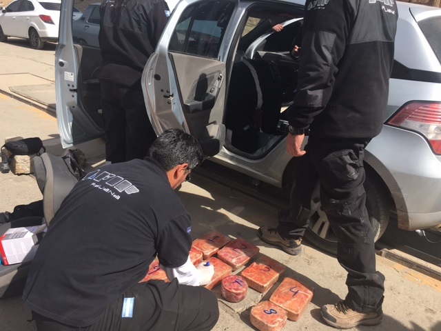 El descubrimiento se produjo cuando un auto marca Chevrolet Agile ingresó al país por el puente internacional que une La Quiaca y Villazón. Allí los funcionarios aduaneros revisaron el automóvil con la asistencia de los canes antinarcóticos, Sheisha y Lita, quienes “marcaron” el asiento trasero y la parte central del interior del automóvil.
