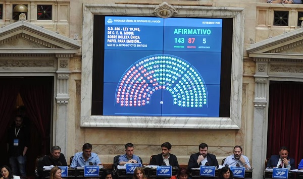 La Cámara de Diputados ratificó, con 143 votos afirmativos, los cambios realizados por el Senado y sancionó hoy de manera definitiva la implementación de la Boleta Única de Papel. El nuevo instrumento electoral comenzará a utilizarse a nivel nacional en las elecciones legislativas del año que viene.