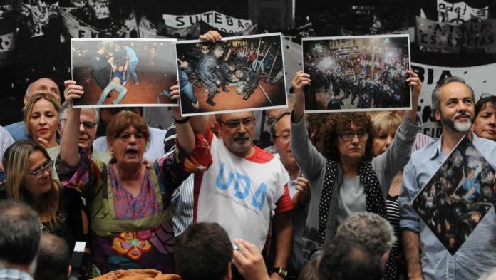 “Hemos decidido un paro nacional de 24 horas para mañana contra la represión”, anunció Sonia Alesso, titular de la Ctera. “Esta medida la hemos dispuesto porque no vamos a permitir que se reprima a los trabajadores y a trabajadoras. No se toca a un maestro, a un trabajador, no se reprime una protesta social. No vamos a convalidar en silencio la represión”, indicó Alesso en conferencia de prensa.