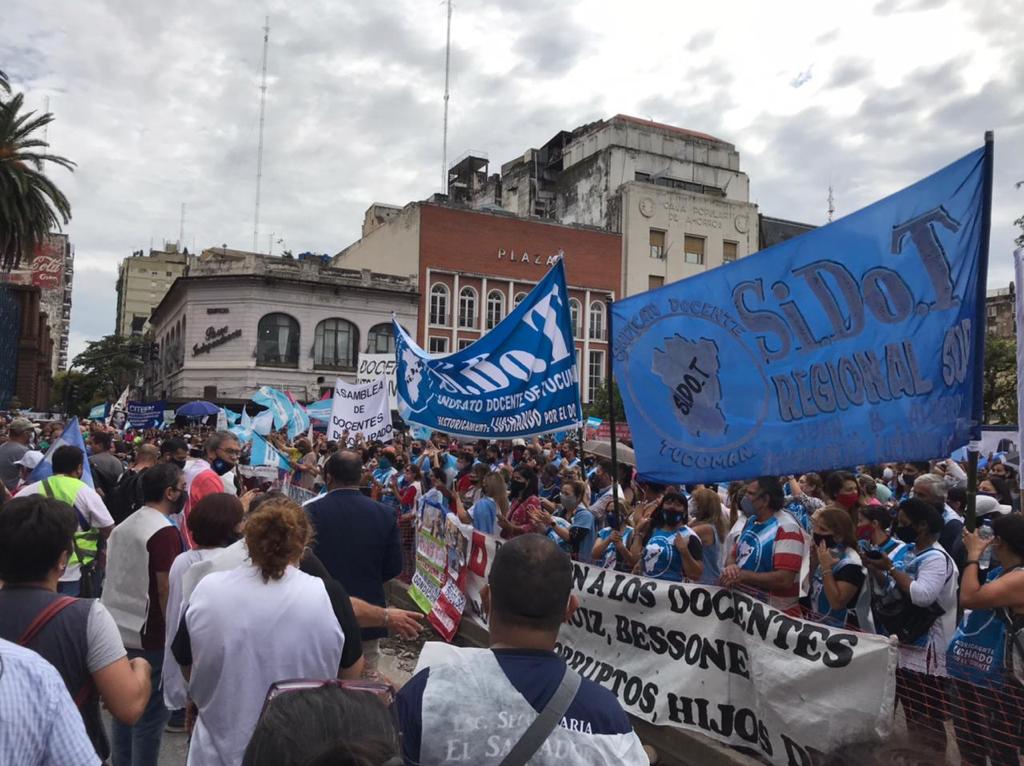 A ellos se sumaron otros sectores como Tribuna Docente, Agrupación Isauro Arancibia y los Docentes Autoconvocados, entre otros, quienes hicieron sentir el malestar por lo escaso de la suba salarial y la falta de condiciones para volver a las escuelas.