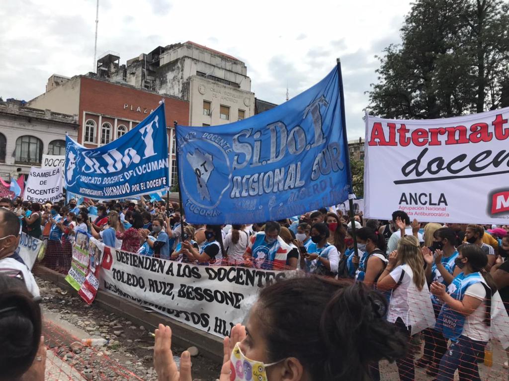 Estuvieron presentes referentes de los dos sindicatos que no participaron de las negociaciones, la Unión Docentes Tucumanos (UDT) y el Sindicato Argentino de Docentes Particulares (SADOP) a través de sus titulares, Juan Carlos Aguirre y Bernardo Beltrán.