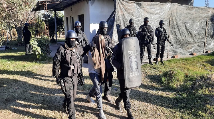 “Luego de la investigación realizada por el personal de la División Homicidios, logramos determinar que estos prófugos de 49 y 19 años se escondían en una casa ubicada en un camino vecinal llamado Virgen de Fátima, de la localidad de Los Gutiérrez. En el lugar secuestramos una escopeta, un revolver, una balanza de precisión, un auto que tenía pedido de secuestro, $15.000 entre otros electrodomésticos”, explicó el comisario Ernesto Soria, drector de Investigaciones Capital quien supervisó las medidas.