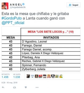 Nunca quedó en claro quiénes habían sido los autores de esos silbidos. Sin embargo, el periodista Ángel de Brito se encargó de averiguar esa información y publicó la lista en su cuenta de Twitter. En la misma figuraban los invitados de la mesa 43.