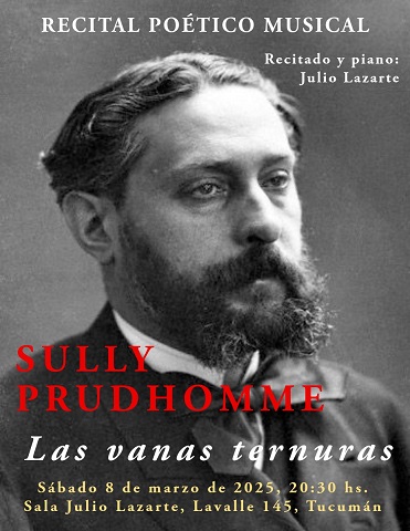 - “Las vanas ternuras”, de Sully Prudhomme, a las 20.30 en Sala Lazarte, de Lavalle 145, San Miguel de Tucumán. Recitado y piano: Maestro Julio Lazarte.