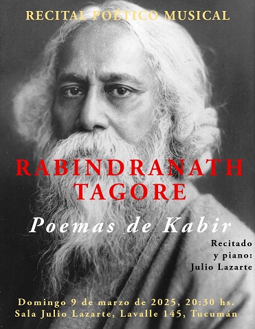 - “Poemas de Kabir”, de Rabindranath Tagore, a las 20.30 en Sala Lazarte, de Lavalle 145, San Miguel de Tucumán. Recitado y piano: Maestro Julio Lazarte.