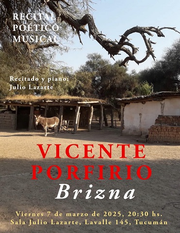 - “Brizna”, de Vicente Porfirio, a las 20.30 en Sala Lazarte, de Lavalle 145, San Miguel de Tucumán. Recitado y piano: Maestro Julio Lazarte.